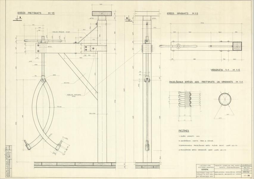 Bikstu ūdensdzirnavas. Dzirnakmeņu pacelšanas ierīce (Dobeles novads, Bikstu pagasts. Biksti. Palejas dzirnavas.)