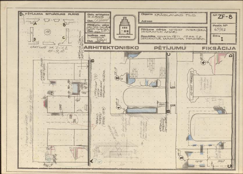 Krāslavas pils. Interjera dekoratīvā apdare - 19.gs. 2.puses krāsojuma fragmenti (Krāslavas novads, Krāslava. Pils iela 6.)