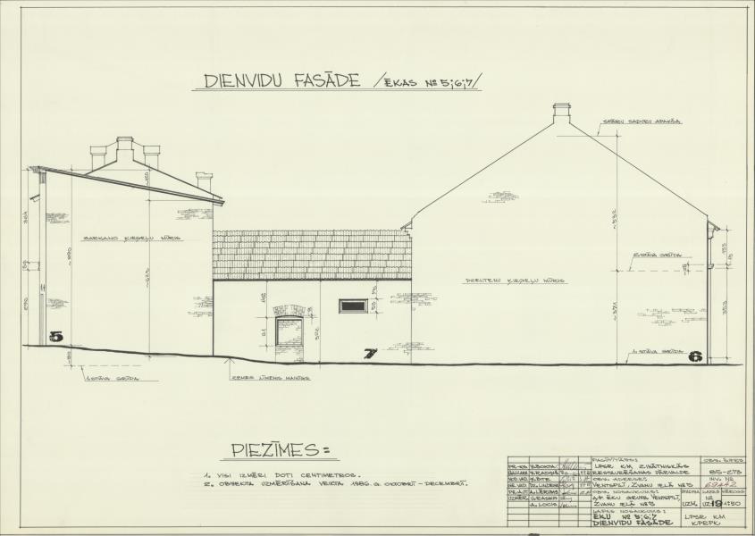 Ēku komplekss. Ēkas nr. 5, 6, 7, dienvidu fasāde ( Ventspils. Zvana iela 5.)