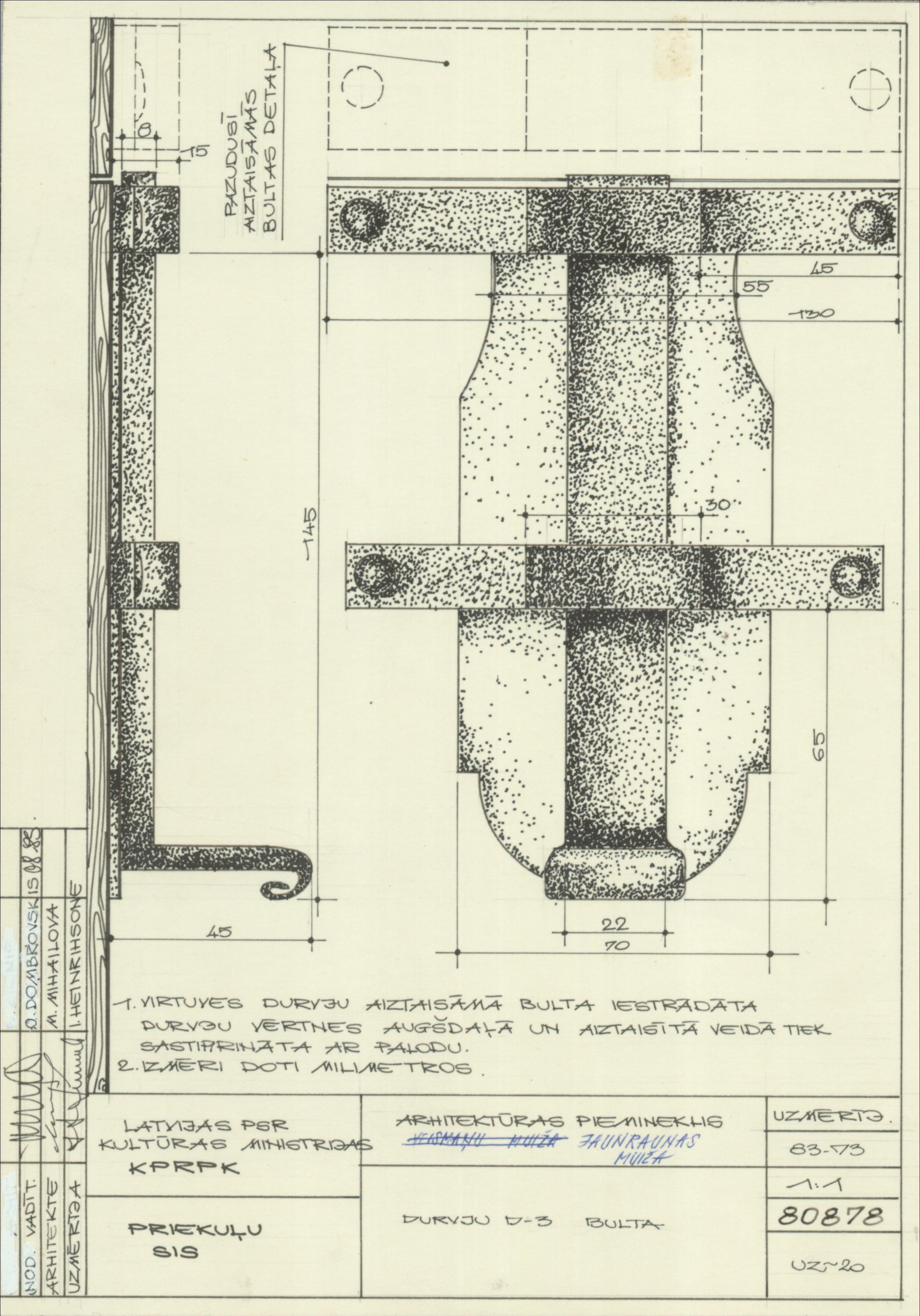 Jaunraunas muižas apbūve. Muižas ēka. Durvju D-3 bulta (Priekuļu novads, Priekuļu pagasts. Alpi.)