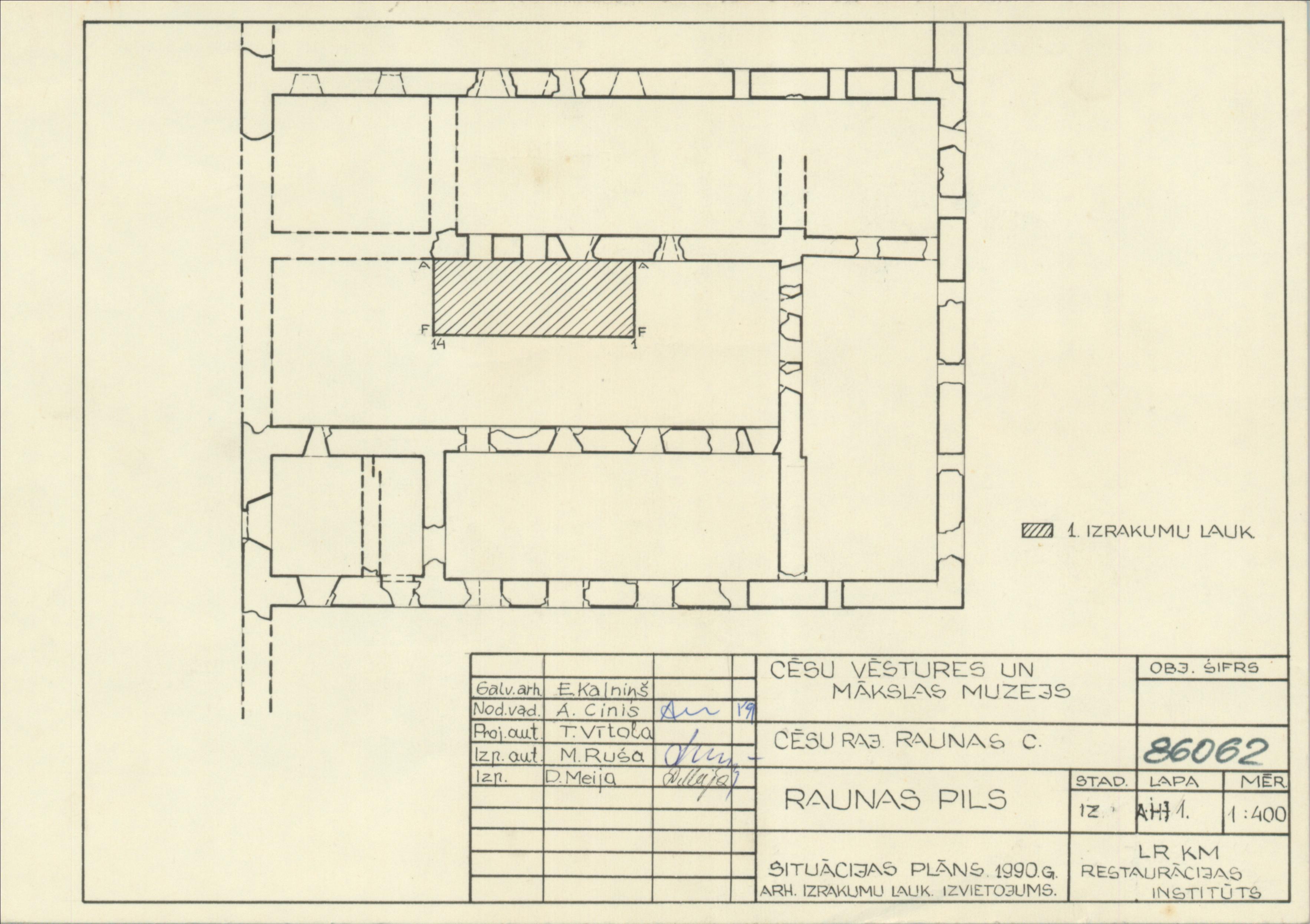 Raunas viduslaiku pils. Arheoloģisko izrakumu laukuma izvietojums (Raunas novads, Raunas pagasts. Rauna.)