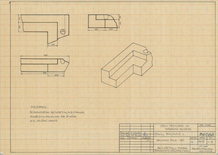 Raunas viduslaiku pils. Būvdetaļas, šūnakmens aplodas fragments (Raunas novads, Raunas pagasts. Rauna.)