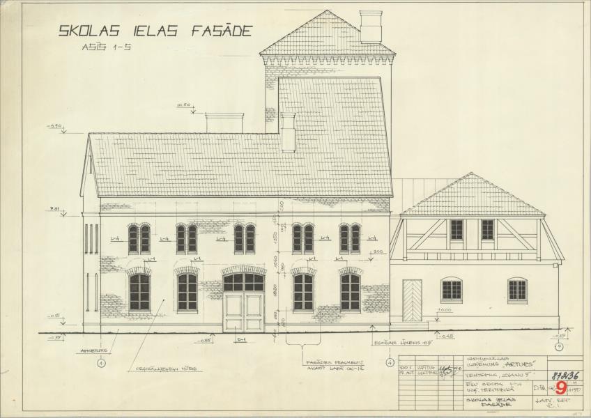 Ēku komplekss. Ēkas 1, 2, 3, 4, Skolas ielas fasāde ( Ventspils. Zvana iela 5.)