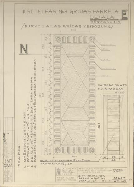 Dzīvojamā ēka. 2. stāva telpas grīdas parketa detaļa ( Rīga. Šķūņu iela 17.)