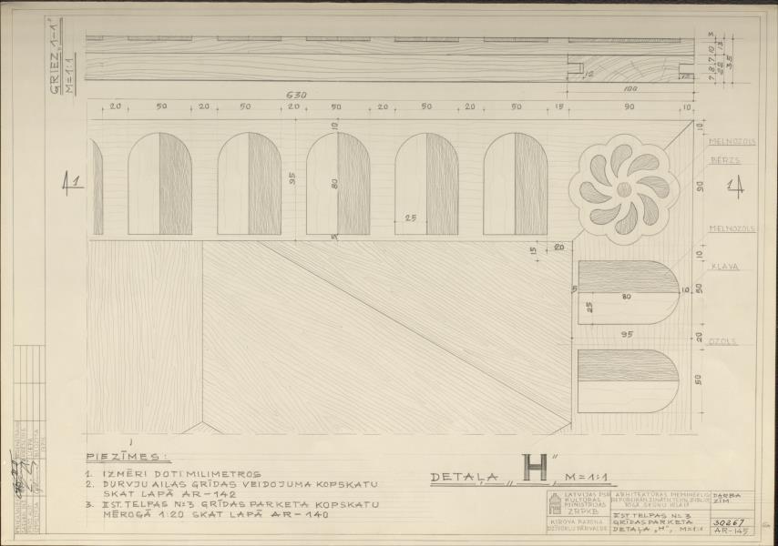 Dzīvojamā ēka. 2. stāva telpas grīdas parketa detaļa ( Rīga. Šķūņu iela 17.)