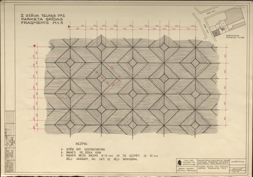 Dzīvojamā ēka. 2. stāva telpas parketa grīdas fragments ( Rīga. Šķūņu iela 17.)