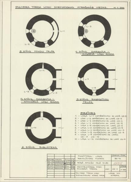 Pulvera (Smilšu) tornis un muzejs. Logu shematiskas atrašanās vietas ( Rīga. Smilšu iela 20.)