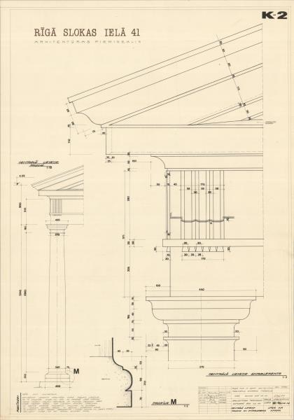 Dzīvojamā ēka. Centrālā lieveņa kolonna un antablements ( Rīga. Slokas iela 41a.)