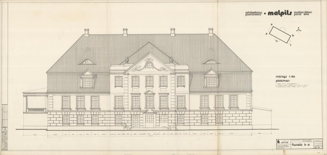Mālpils muižas apbūve, parks. Kungu māja, fasāde (Mālpils novads, . Mālpils. Pils iela 6.)