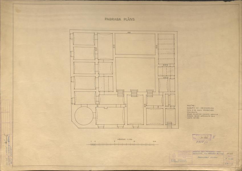 Dzīvojamā ēka. Pagrabs, plāns (dublēts no I. Devendrusa 1914.gadā pārbūves projekta) ( Rīga. Riharda Vāgnera iela 9.)