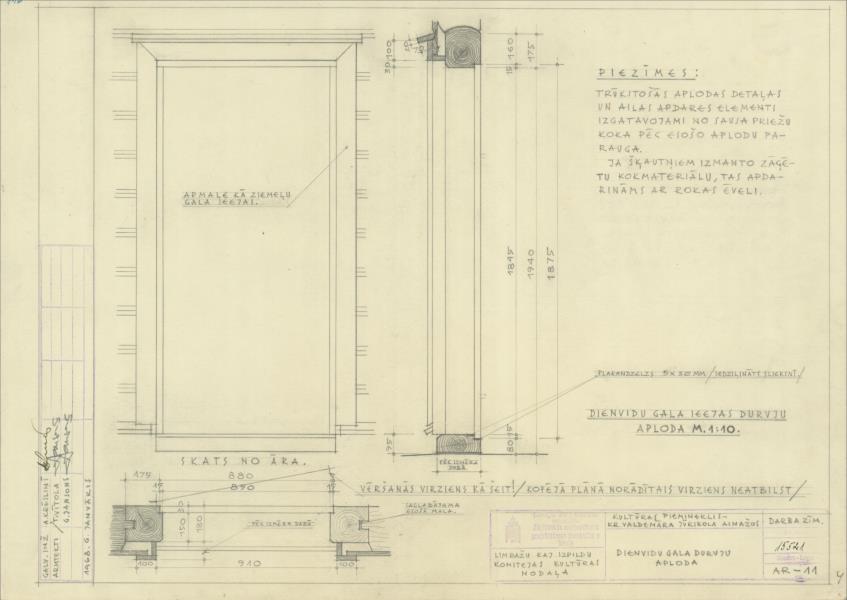 Ainažu jūrskola. Dienvidu ieejas gala durvis, aploda (Salacgrīvas novads, Ainaži. Valdemāra iela 47.)