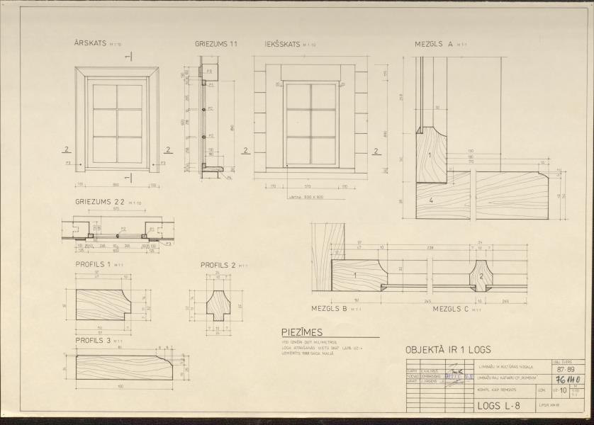 Dzejnieka F.Bārdas dzīvesvieta. Dzīvojamā ēka, Logi L-8, profili (Limbažu novads, Katvaru pagasts. Rumbiņi.)