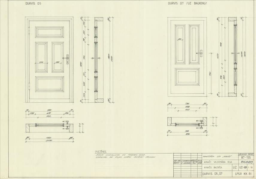 Ainažu pareizticīgo baznīca. Durvis D-5, D-7 (uz balkonu) (Salacgrīvas novads, Ainaži. Valdemāra iela 63.)