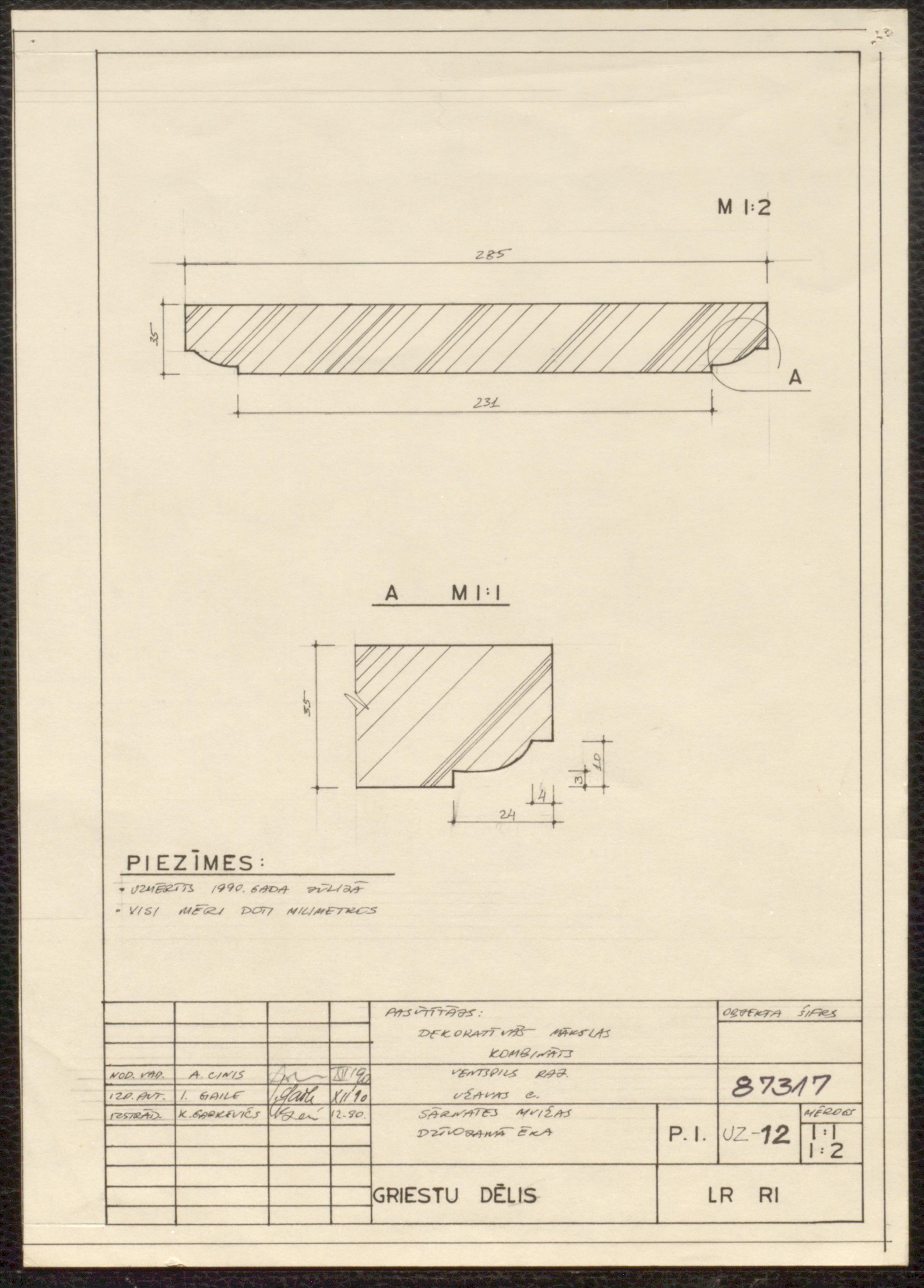 Sārnates muiža. Dzīvojamā ēka, grieztu dēlis (Ventspils novads, Užavas pagasts. Sārnate.)