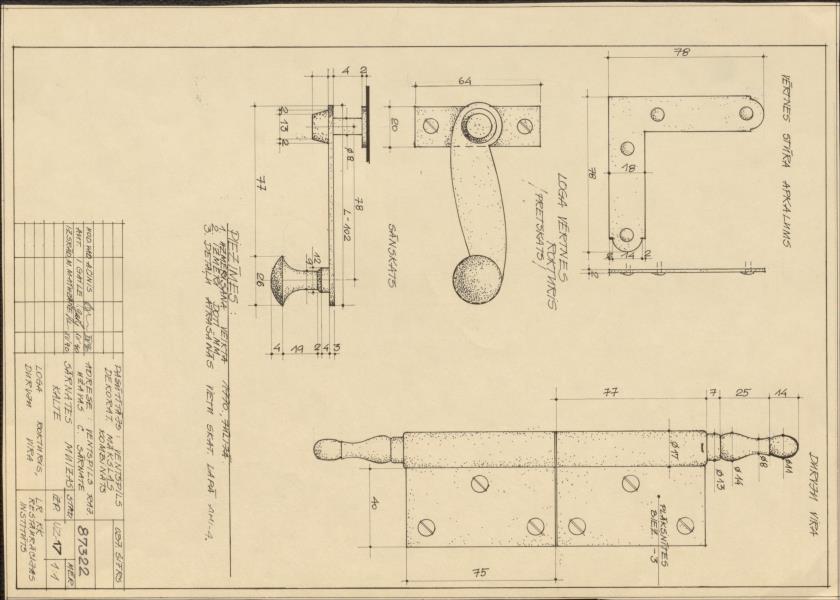 Sārnates muiža. Kalte, loga rokturis, durvju vira (Ventspils novads, Užavas pagasts. Sārnate.)