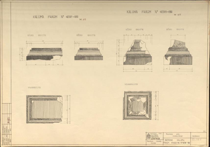 Bauskas pilsdrupas. Akmens kaluma fragmenti (Bauskas novads, Bauska. Pilskalns.)