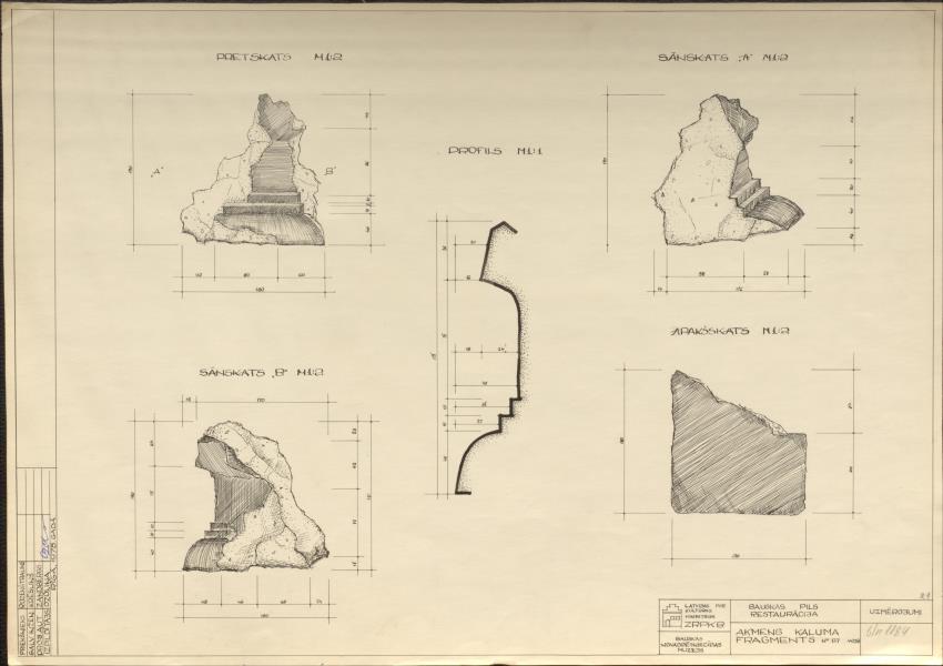 Bauskas pilsdrupas. Akmens kaluma fragmenti (Bauskas novads, Bauska. Pilskalns.)