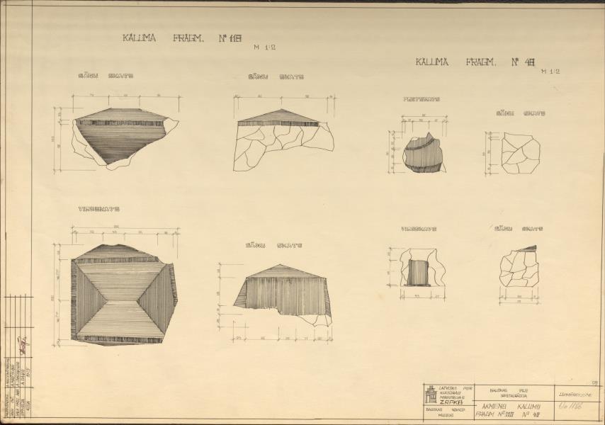 Bauskas pilsdrupas. Akmens kaluma fragmenti (Bauskas novads, Bauska. Pilskalns.)