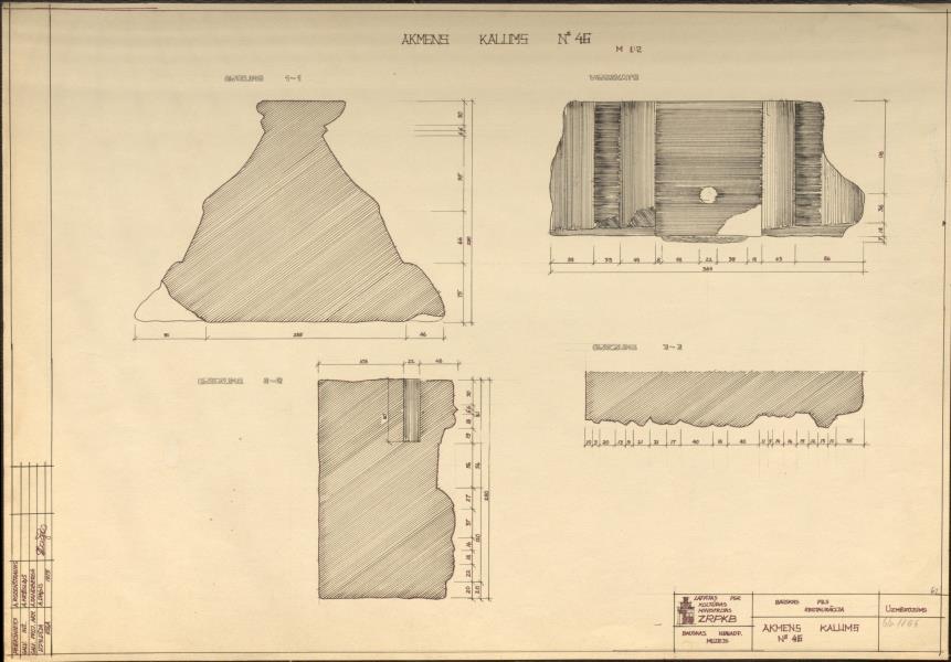 Bauskas pilsdrupas. Akmens kaluma fragmenti (Bauskas novads, Bauska. Pilskalns.)