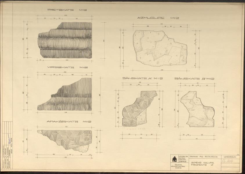 Bauskas pilsdrupas. Akmens kaluma fragmenti (Bauskas novads, Bauska. Pilskalns.)