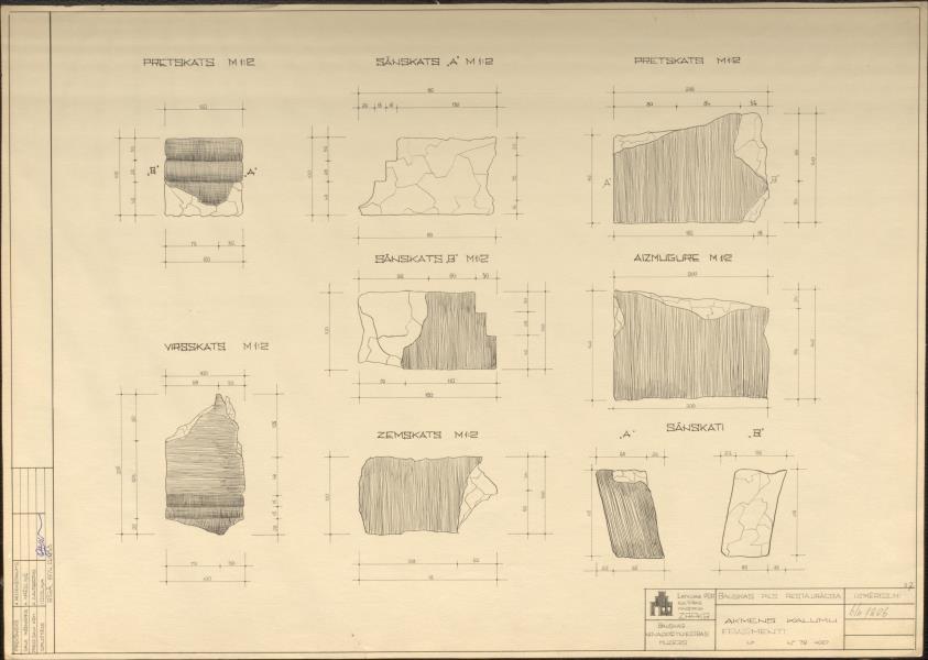 Bauskas pilsdrupas. Akmens kaluma fragmenti (Bauskas novads, Bauska. Pilskalns.)