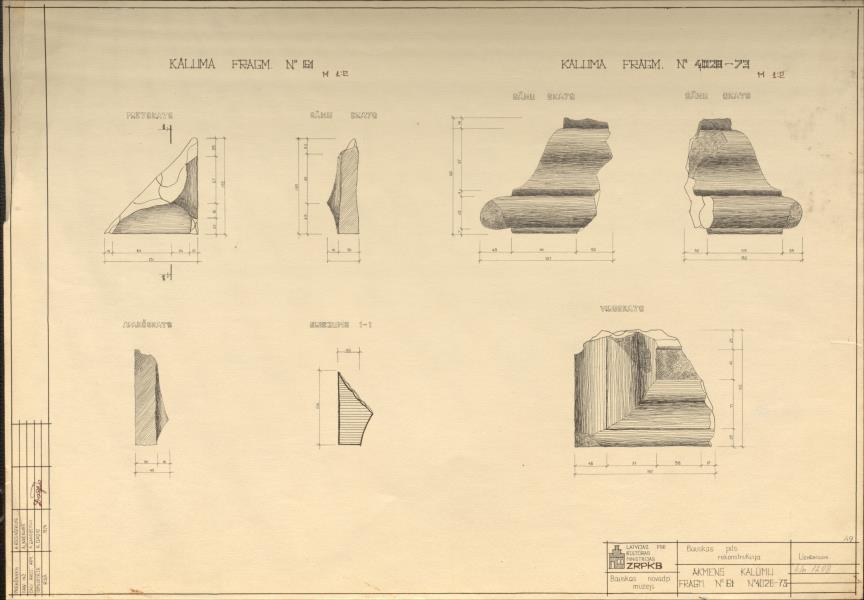 Bauskas pilsdrupas. Akmens kaluma fragmenti (Bauskas novads, Bauska. Pilskalns.)