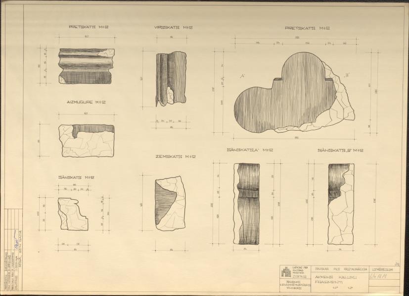 Bauskas pilsdrupas. Akmens kaluma fragmenti (Bauskas novads, Bauska. Pilskalns.)