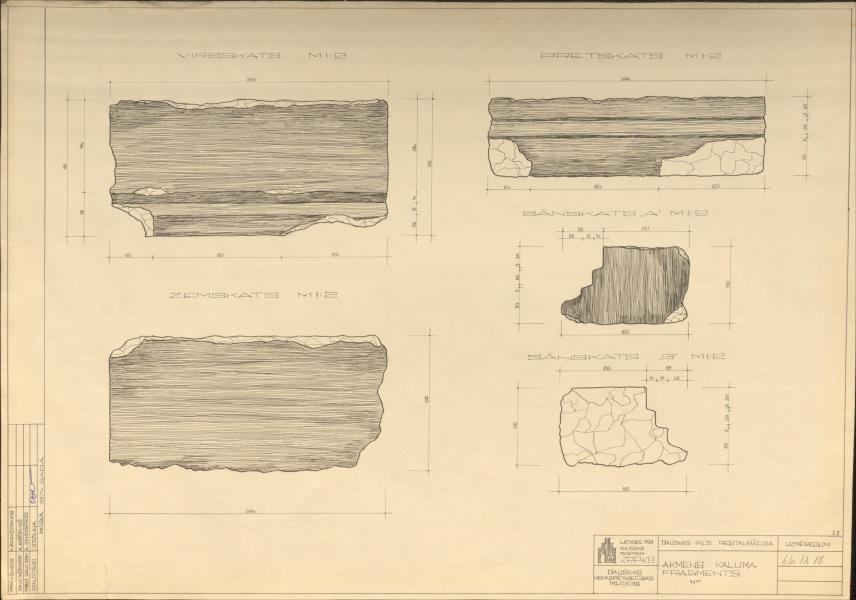 Bauskas pilsdrupas. Akmens kaluma fragmenti (Bauskas novads, Bauska. Pilskalns.)