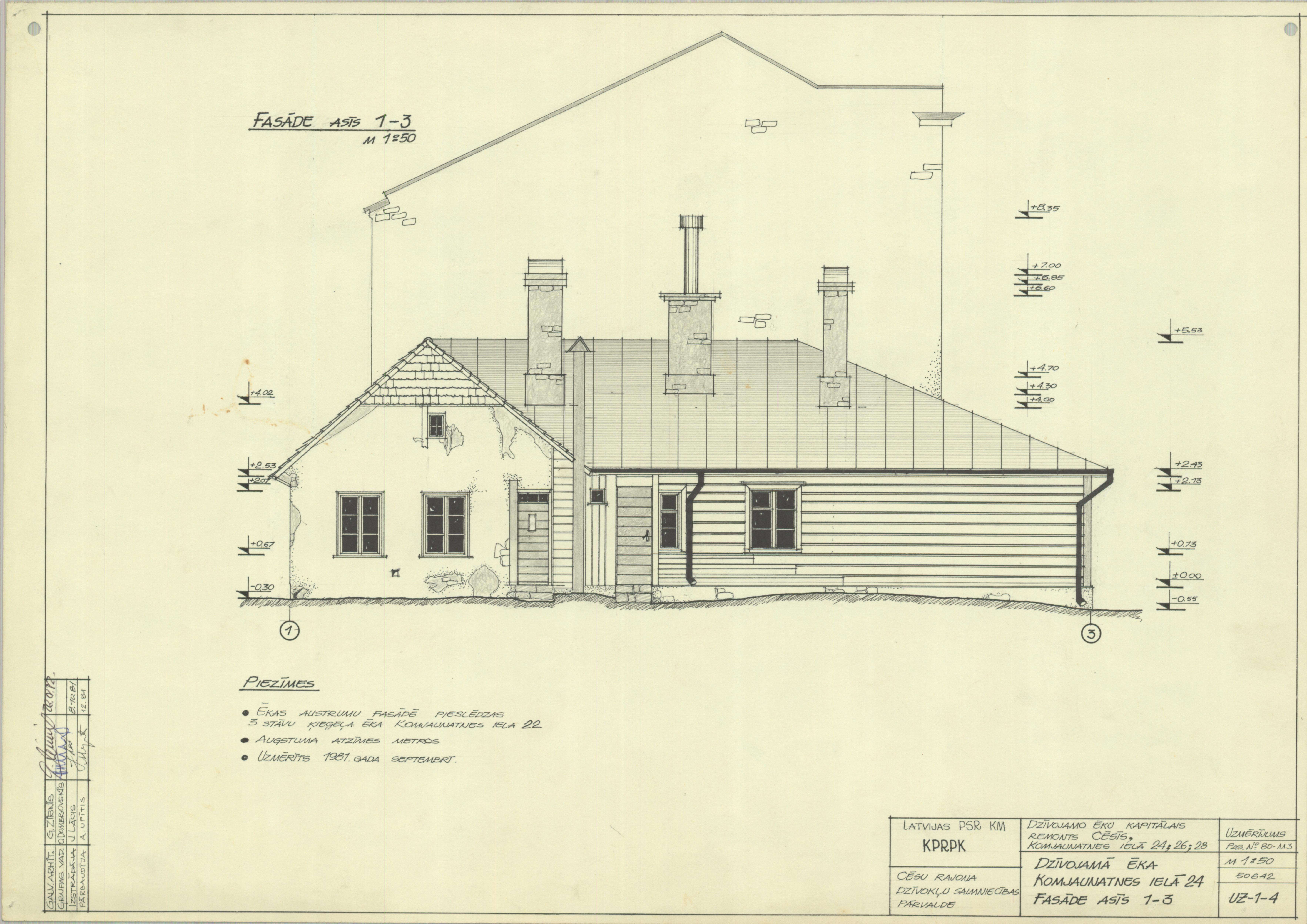 Dzīvojamā ēka. Fasāde asīs (Cēsu novads, Cēsis. Lielā Katrīnas iela 24.)