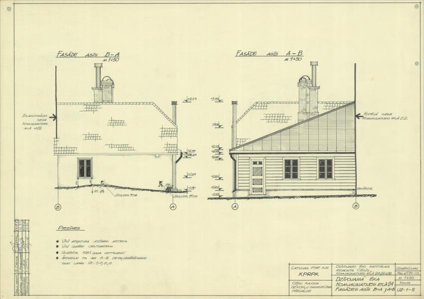 Dzīvojamā ēka. Fasāde asīs (Cēsu novads, Cēsis. Lielā Katrīnas iela 24.)