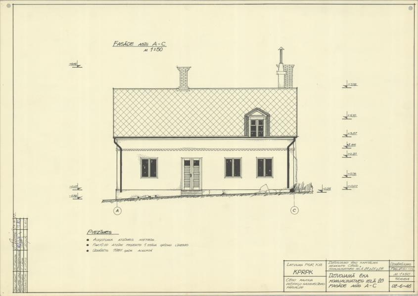 Dzīvojamā ēka. Fasāde asīs (Cēsu novads, Cēsis. Lielā Katrīnas iela 28.)