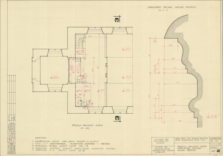 Biķeru luterāņu baznīca. Ērģeļu balkons, draudzes telpas siena ( Rīga. Vecā Biķernieku iela 59.)