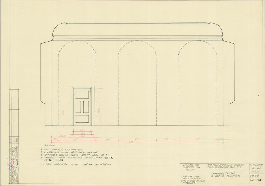 Biķeru luterāņu baznīca. Draudzes telpas austrumu sienas notinums ( Rīga. Vecā Biķernieku iela 59.)