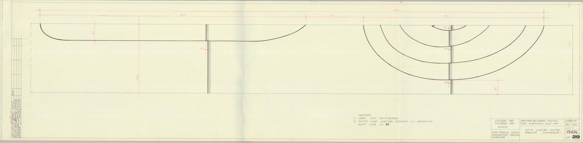 Biķeru luterāņu baznīca. Jumta izbūves volūtas šablons (nospiedums) ( Rīga. Vecā Biķernieku iela 59.)
