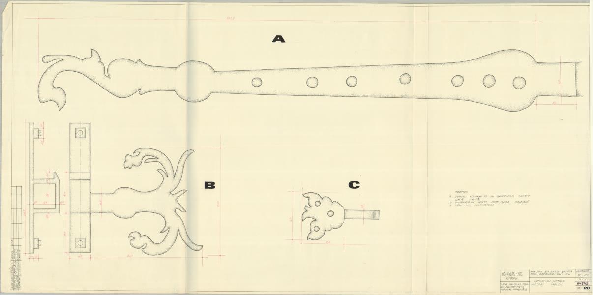 Biķeru luterāņu baznīca. Ārdurvju metāla kalumu šabloni ( Rīga. Vecā Biķernieku iela 59.)