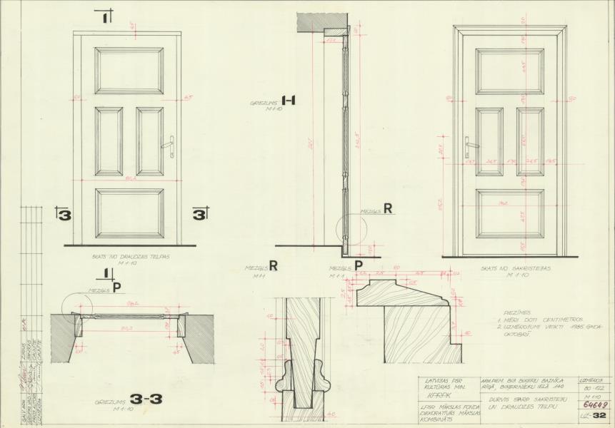 Skats no draudzes telpas, skats no sakristejas, griezumi