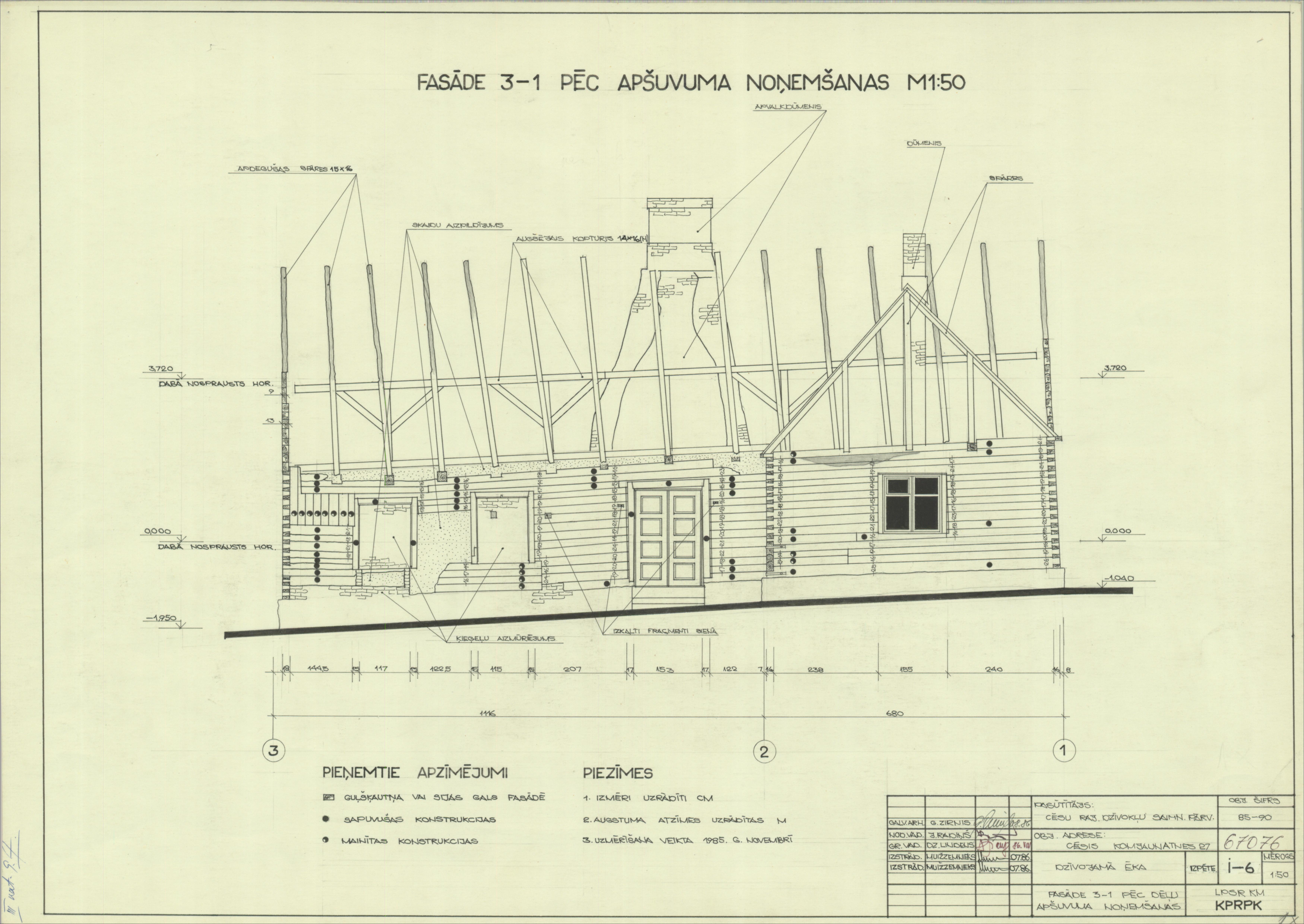 Dzīvojamā ēka. Fasāde, pēc apšuvuma noņemšanas (Cēsu novads, Cēsis. Lielā Katrīnas iela 27.)
