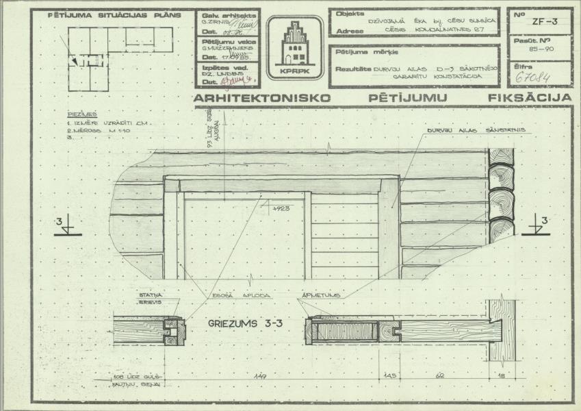 Dzīvojamā ēka. Durvju ailas D-3 sākotnējo gabarītu konstatācija (Cēsu novads, Cēsis. Lielā Katrīnas iela 27.)