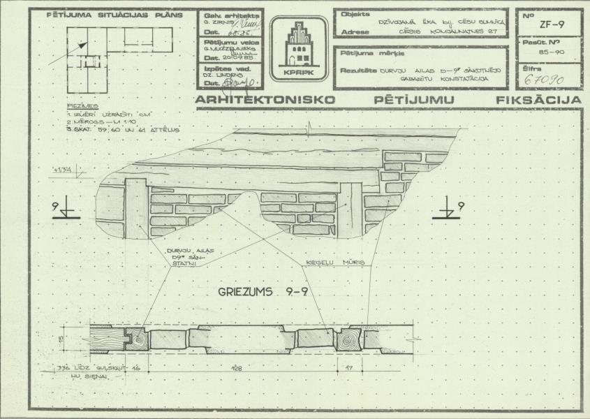 Dzīvojamā ēka. Durvju ailas D-9 sākotnējo gabarītu konstatācija (Cēsu novads, Cēsis. Lielā Katrīnas iela 27.)