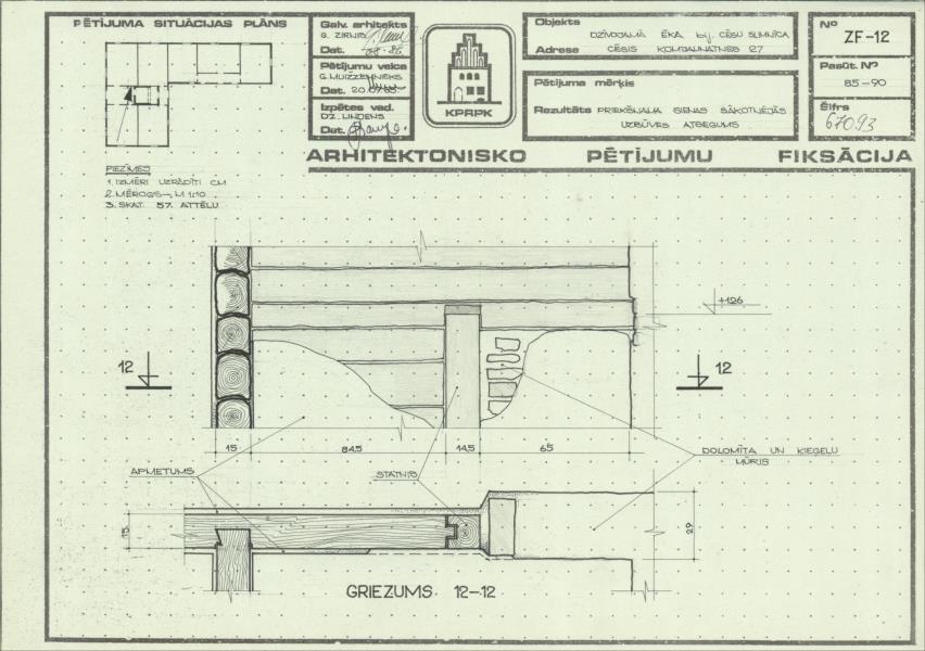 Dzīvojamā ēka. Priekšnama sienas sākotnējās uzbūves atsegums (Cēsu novads, Cēsis. Lielā Katrīnas iela 27.)
