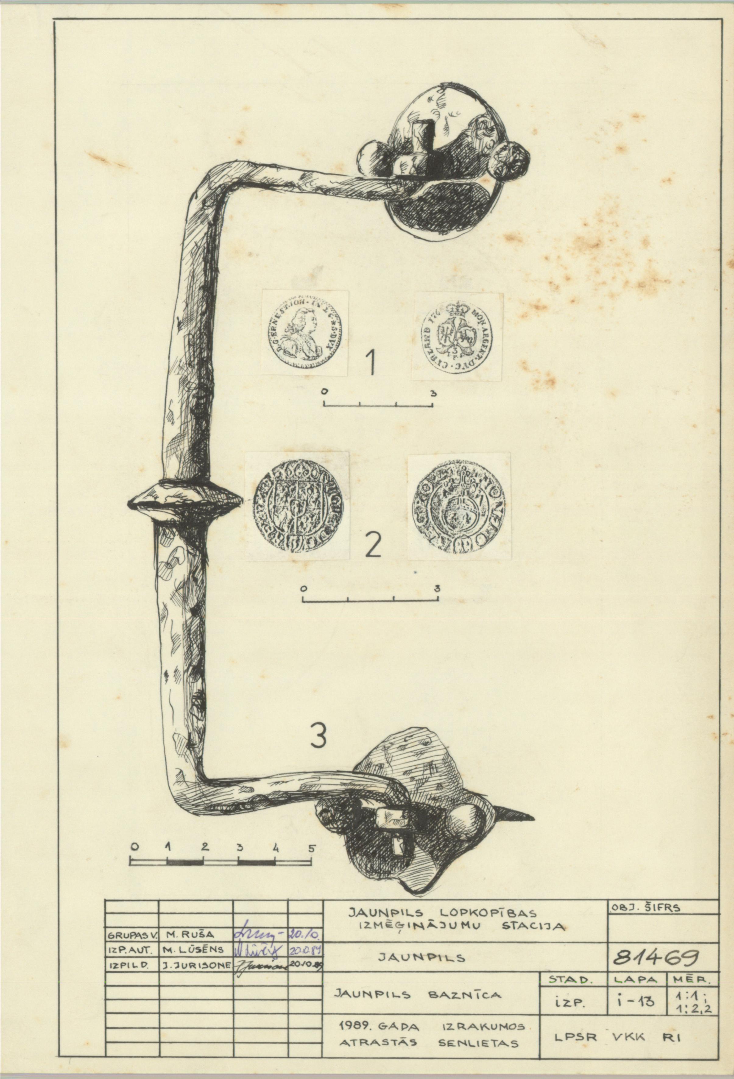 Jaunpils luterāņu baznīca. Arheoloģiskajos izrakumos atrastās senlietas (Jaunpils novads, Jaunpils pagasts. Jaunpils. Jaunpils baznīca.)