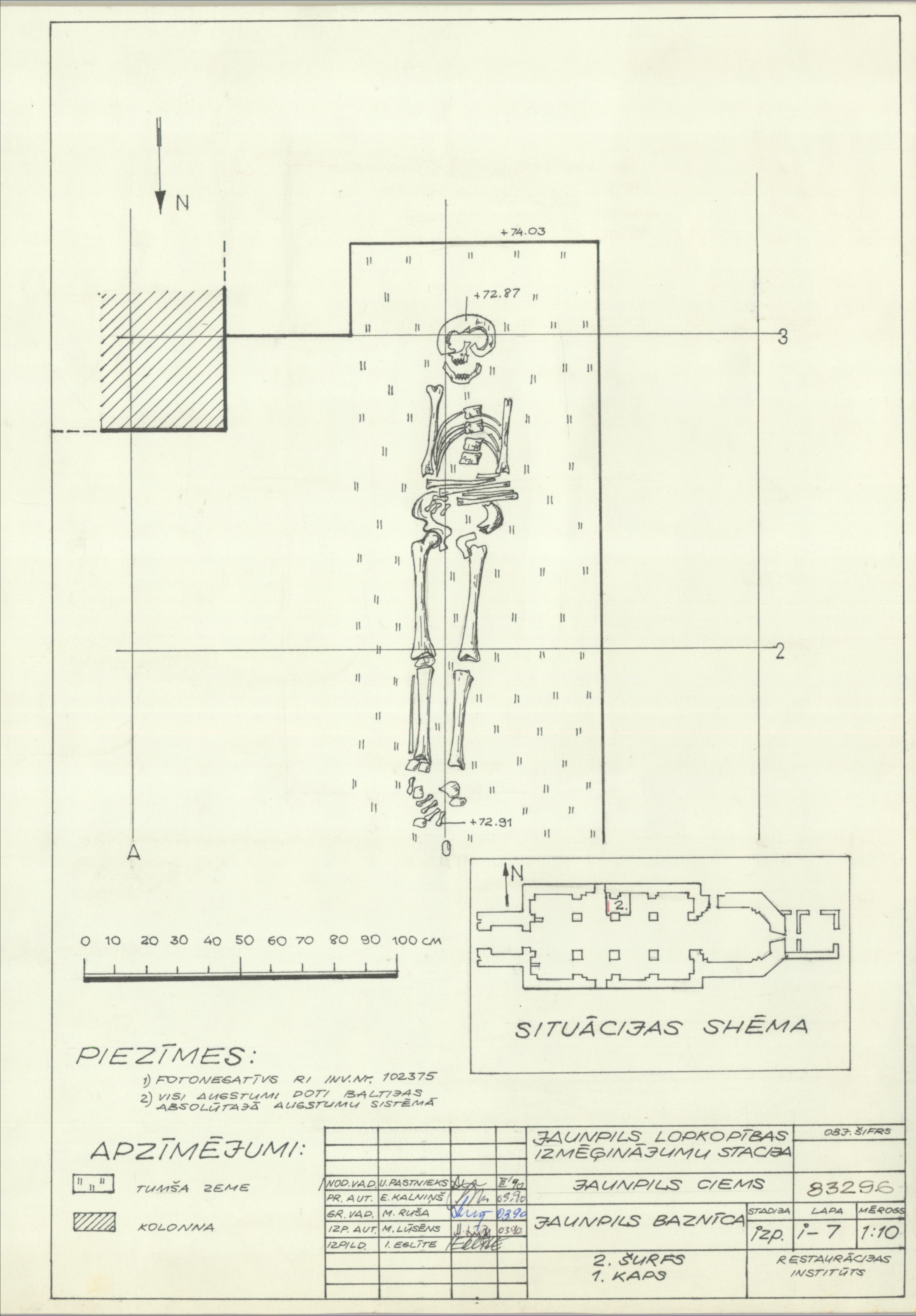 Jaunpils luterāņu baznīca. 2. šurfs 1. kaps, situācijas shēma (Jaunpils novads, Jaunpils pagasts. Jaunpils. Jaunpils baznīca.)
