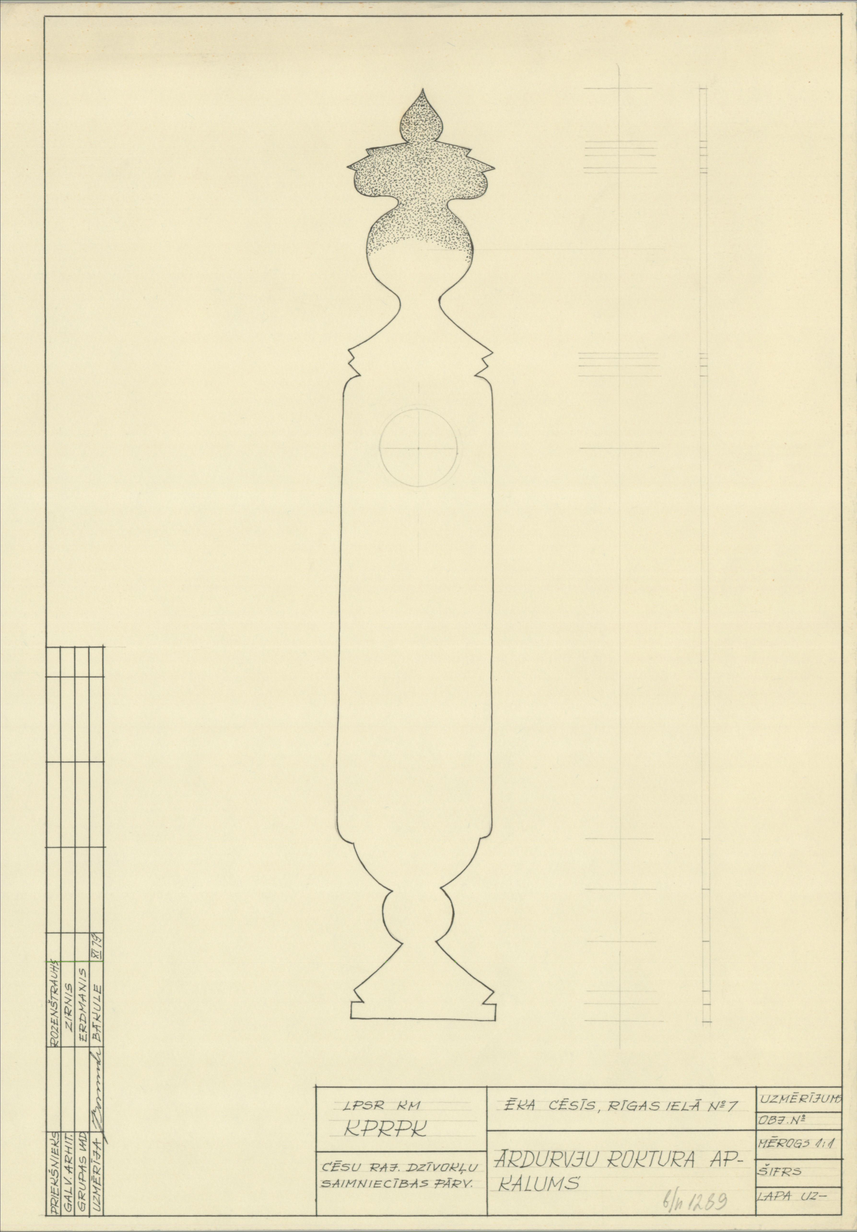 Rātsnams ar piebūvi un sarga mājiņu. Ārdurvju roktura apkalums (Cēsu novads, Cēsis. Rīgas iela 7.)