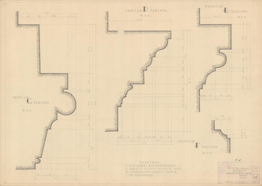 Jelgavas pils. Telpas nr. 3 arhitektūras detaļu šabloni ( Jelgava. Lielā iela 2.)