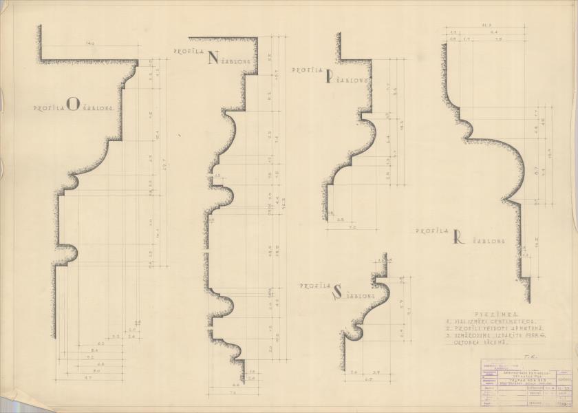 Jelgavas pils. Telpas nr. 6 un nr. 3 detaļu šabloni ( Jelgava. Lielā iela 2.)