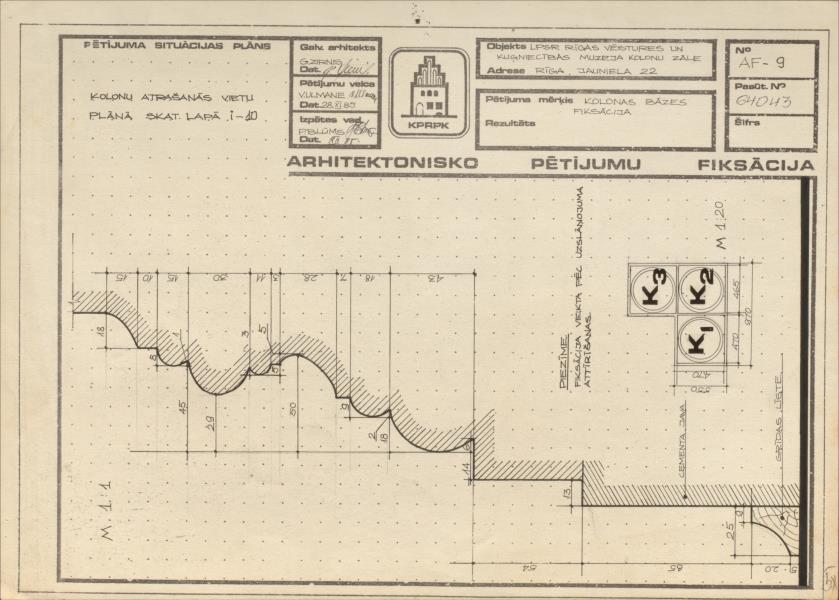 Rīgas vēstures un kuģniecības muzeja ēka. Kolonnu zāle, kolonnas bāze ( Rīga. Palasta iela 4.)