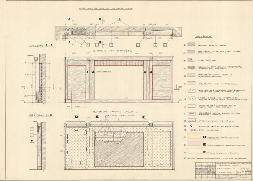 Rīgas vēstures un kuģniecības muzeja ēka. Kolonnu zāle, ziemeļu siena, kartogramma partera limenī ( Rīga. Palasta iela 4.)