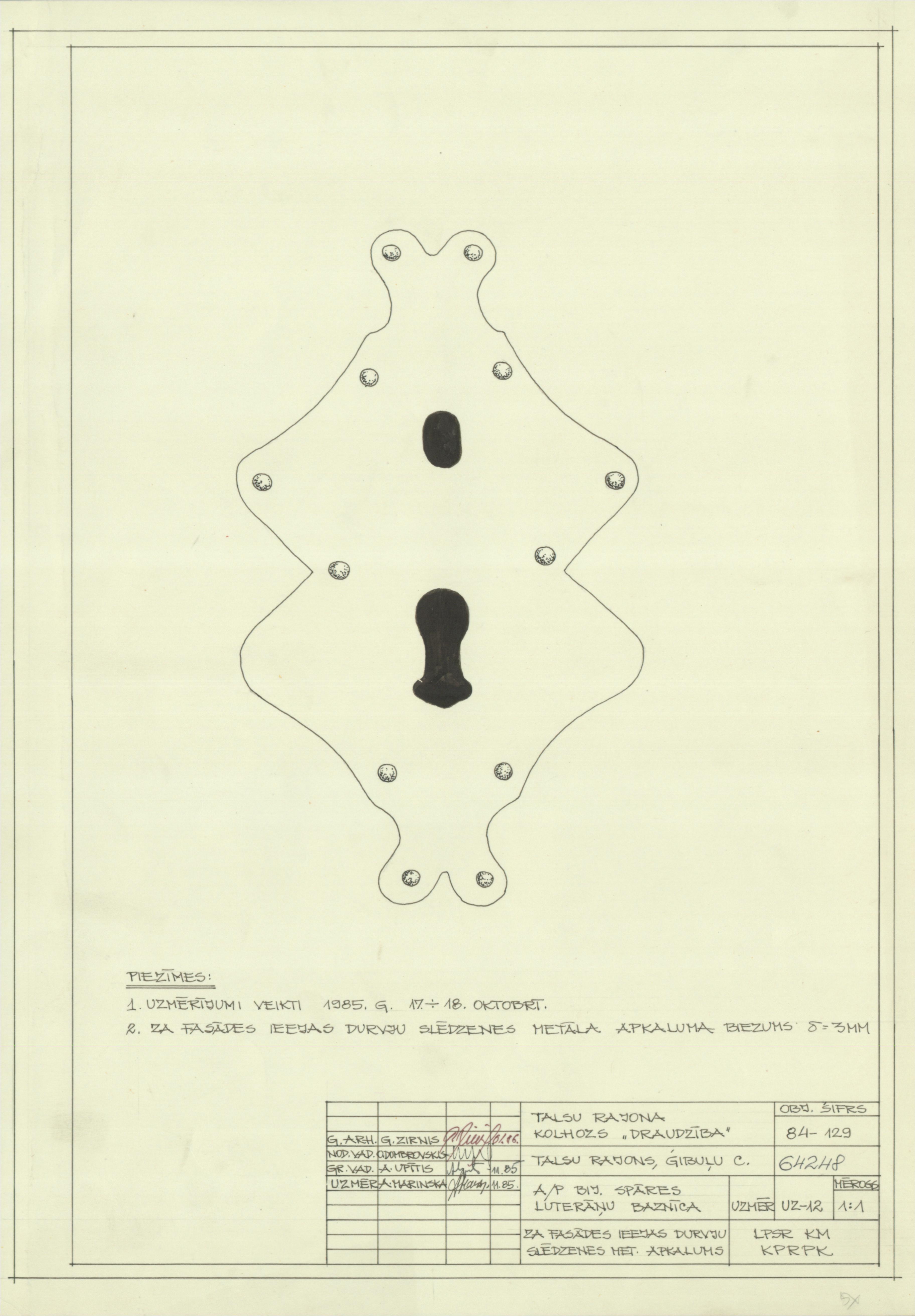 Spāres luterāņu baznīca. Ieejas durvju slēdzenes metāla apkalums (Talsu novads, Ģibuļu pagasts. Spāre. Spāres baznīca.)