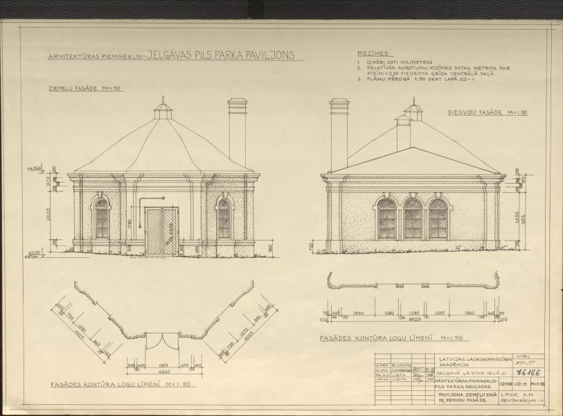Jelgavas pils parks. Paviljona ziemeļu, dienvidu fasādes ( Jelgava. Lielā iela 2.)