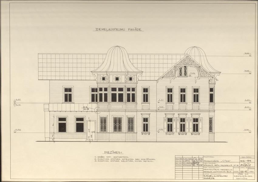 Dzīvojamā ēka - pansija. Ziemeļaustrumu fasāde ( Jūrmala. Meža prospekts 18.)